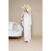Ontdek de Kaftan Inaya (Binti), een elegante beige kaftan met een luxe gouden borduursel. Perfect voor elke gelegenheid, met een comfortabele pasvorm voor