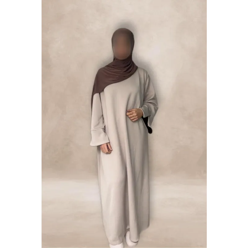 Dankzij het one-size ontwerp past de abaya comfortabel bij verschillende lichaamstypes en lengtes. De rechte snit biedt volledige bewegingsvrijheid, terwijl de lange mouwen en hoge kwaliteit afwerking zorgen voor een verfijnde, moderne look.