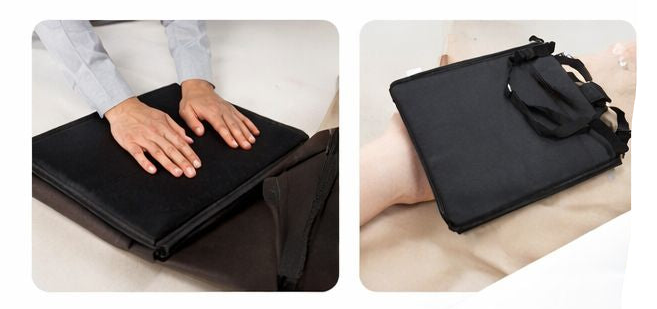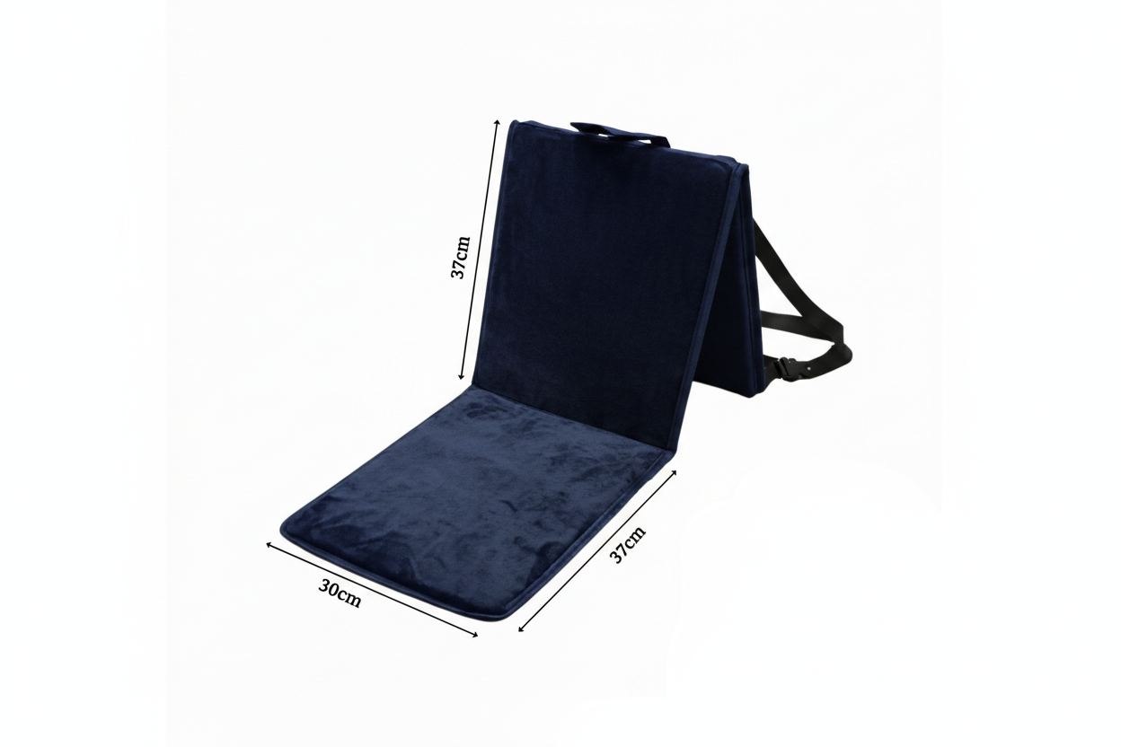 De stevige rugleuning zorgt voor een gezonde zithouding en ontlast uw rugwervels, waardoor u langer en pijnvrij kunt blijven zitten. Het zachte zitvlak zorgt voor extra comfort. Na gebruik klapt u de stoel eenvoudig dicht en draagt u hem als een tas over uw schouder. Een onmisbaar hulpmiddel voor een comfortabel moskeebezoek.