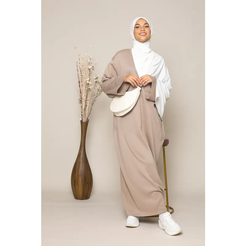 Voor een casual look stellen we voor om de jurk te combineren met een premium Sandy grijze hijab en een paar sneakers. Dit zorgt voor een eenvoudige en stijlvolle uitstraling, perfect voor het dagelijks leven.